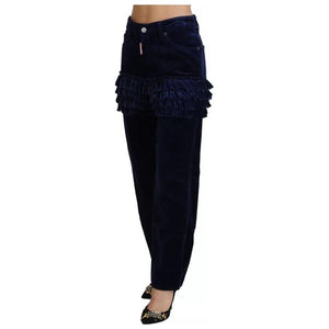 Dsquared² Blue Ruffles HighWaist Cotton Denim Boston Fit Pants