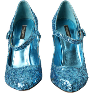 Dolce & Gabbana Blue Sequin Mary Jane Pumps High Heels Shoes
