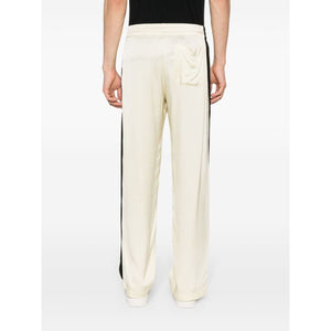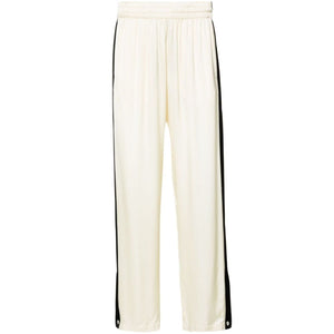 beige/black satin finish side stripe detailing elasticated waistband high-waisted two side inset pockets rear patch pocket straight leg Viscose trousers Size and Fit - This piece fits true to size. We recommend you get your regular size. Model is 1,84m / 6ft 1in wearing size M