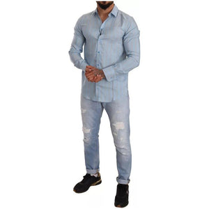 Dolce & Gabbana Blue Striped Silk Formal Dress MARTINI Shirt