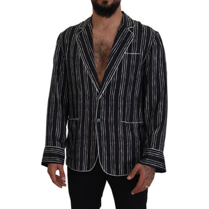 Dolce & Gabbana Blue Striped Silk Pajama Shirt Jacket
