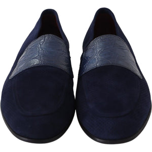 Dolce & Gabbana Blue Suede Caiman Loafers Slippers Shoes