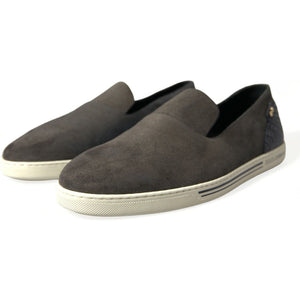 Dolce & Gabbana Blue Suede Caiman Men Loafers Slippers Shoes