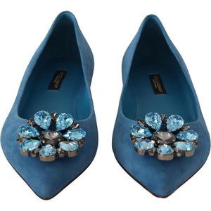 Dolce & Gabbana Blue Suede Crystals Loafers Flats Shoes
