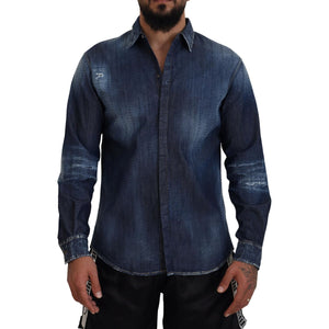 Dsquared² Blue Tattered Crystal Embellished Denim Shirt