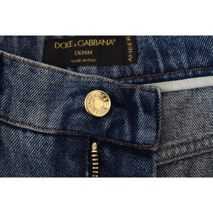 Dolce & Gabbana Blue Tattered Skinny Denim Cotton Jeans
