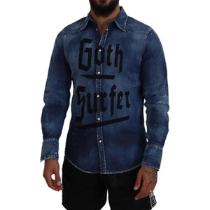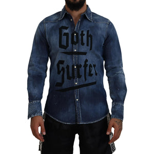 Dsquared² Blue Washed Goth Surfer Print Men Denim Shirt