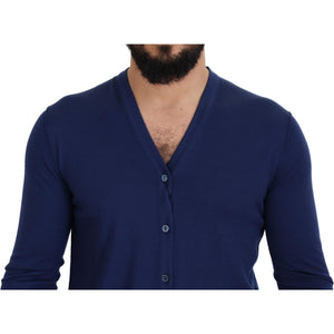 Dolce & Gabbana Blue Wool V-neck Button Down Cardigan Sweater