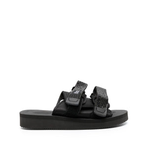 logo-patch touch-strap sandals from BLUMARINE featuring black, logo patch to the front, crystal embellishment, front touch-strap fastening, open toe and flat sole. Touch-strap sandals Size and Fit - Heel 1,2 in / 3 cm; Platform 0,8 in / 2 cm