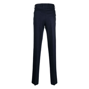 virgin-wool tailored trousers from BOGLIOLI featuring navy blue, virgin wool, tailored design, mid-rise, belt loops, concealed fly and button fastening, two side slit pockets and two rear welt pockets. Wool chino trousers Size and Fit - This piece fits true to size. We recommend you get your regular size. Model is 1,84m / 6ft 1in wearing size 48 (IT)