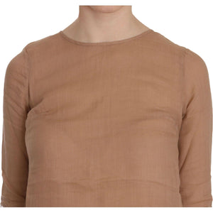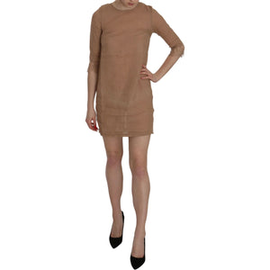 PINK MEMORIES Brown 3/4 Sleeve Crewneck Shift Mini Dress