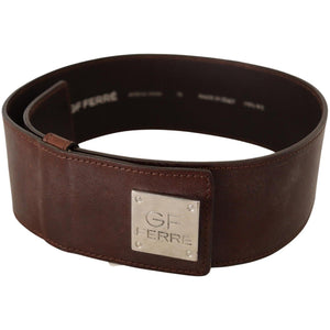 GF Ferre Brown Genuine Leather Wide Logo Buckle Waist Belt