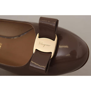 Salvatore Ferragamo Elegant Caraway Brown Pumps with Vara Bow