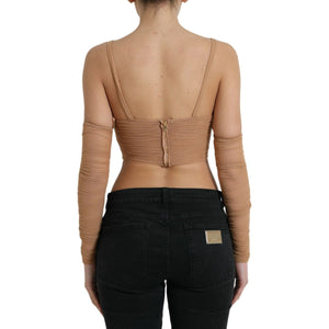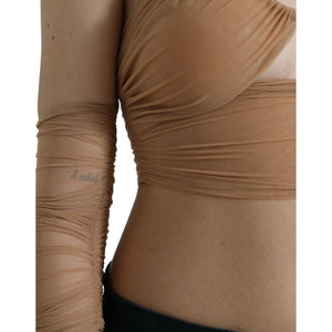 Dolce & Gabbana Brown Nylon Stretch Open Shoulder Cropped Top