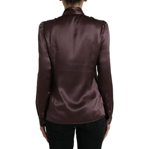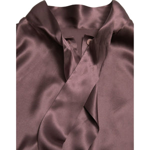 Dolce & Gabbana Brown Silk Ascot Collar Long Sleeve Blouse Top