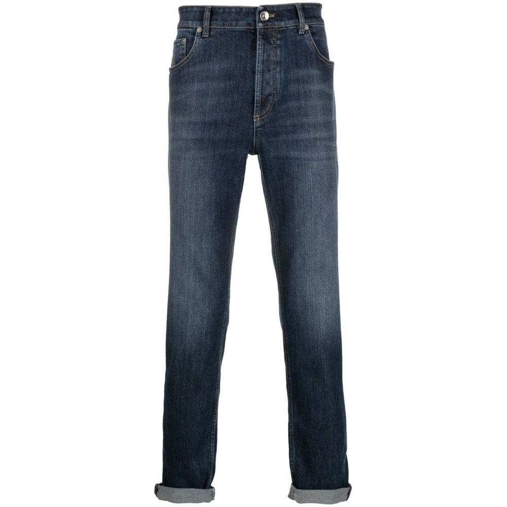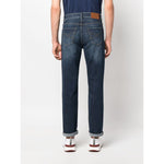 blue cotton/leather denim logo-debossed patch to the rear mid-rise belt loops front button and zip fastening classic five pockets Denim cotton jeans
