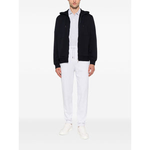 Blue, classic hood, front zip fastening, long sleeves, side slit pockets, ribbed cuffs and hem. Cotton zipped hoodie