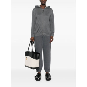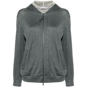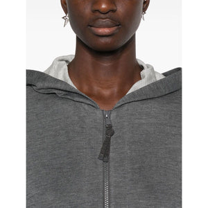dark grey cotton blend jersey texture signature Monili chain detail classic hood long sleeves two side slit pockets straight hem front two-way zip fastening Cotton and silk blend hoodie Size and Fit - This piece fits true to size. We recommend you get your regular size. Model is 1,75m / 5ft 8in wearing size S
