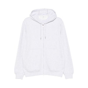 Grey, front zip-fastening, side patch pockets, drawstring hood, ribbed cuffs and hem. Cotton zipped hoodie
