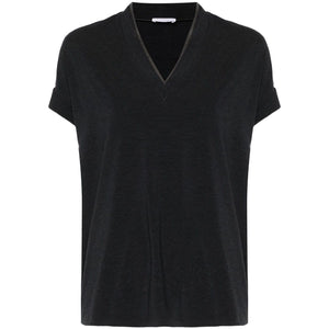 dark grey stretch-cotton jersey texture signature Monili chain detail V-neck short sleeves turn-up cuffs straight hem Cotton v-necked t-shirt Size and Fit - This piece fits true to size. We recommend you get your regular size. Model is 1,75m / 5ft 8in wearing size S