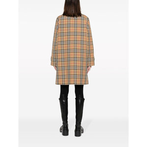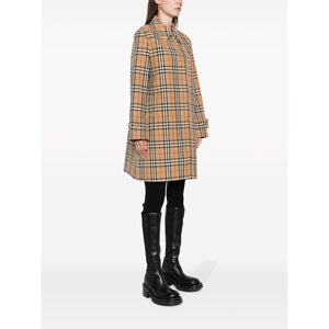 plaid-check pattern jacket from BURBERRY featuring brown, cotton, plaid check pattern, spread collar, concealed front fastening, long sleeves, buttoned cuffs, above-knee length and straight hem. Check motif raincoat Size and Fit - This piece fits true to size. We recommend you get your regular size. Model is 1,75m / 5ft 8in wearing size 8 (UK)