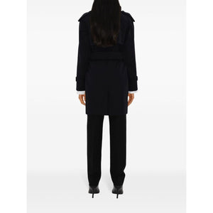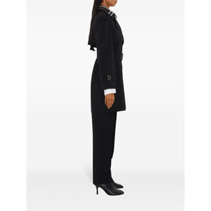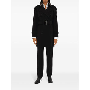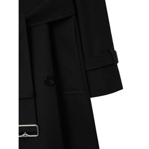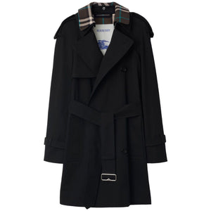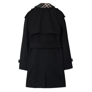 black cotton gabardine weave detachable collar check pattern double-breasted button fastening wide notch lapels epaulettes long sleeves belted cuffs belted waist two side welt pockets American rear vent checked lining straight hem Cotton trench coat Size and Fit - This piece fits true to size. We recommend you get your regular size. Model is 1,75m / 5ft 8in wearing size 8 (UK)