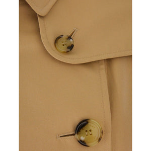 archive beige cotton gabardine weave tonal stitching classic collar epaulettes storm flap long sleeves with belted cuffs belt loops detachable and adjustable waist belt two side welt pockets knee-length central rear vent Vintage Check-pattern lining straight hem double-breasted button fastening Chelsea cotton trench coat Size and Fit - This piece fits true to size. We recommend you get your regular size. Model is 1,75m / 5ft 8in wearing size 8 (UK)