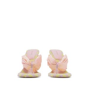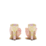 light pink/yellow leather shearling lining check print open toe branded insole logo at the sole 105mm high heel Pool Check sandals Size and Fit - Heel 4,1 in / 10,5 cm
