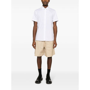 white stretch-cotton poplin texture signature Equestrian Knight embroidery classic collar front button fastening short sleeves straight hem EKD logo cotton shirt Size and Fit - This piece fits true to size. We recommend you get your regular size. Model is 1,84m / 6ft 1in wearing size M