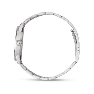 • Side view of CASIO COLLECTION Mod. 3 H - BLACK wristwatch with metal strap, showcasing its sleek design and durable construction.
