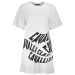 Indulge in the epitome of contemporary chic with this Cavalli Class masterpiece. A stunning short dress designed to turn heads and crafted with the finest cotton, this piece flaits your fashion credentials with its bold logo print. The elegant round neck and playful short sleeves make it an irresistible choice for any trendsetter seeking a fresh and fabulous wardrobe update.