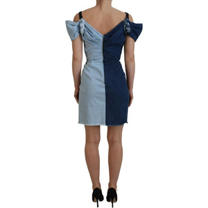 Dolce & Gabbana Two Tone Blue Patchwork Denim Mini Dress