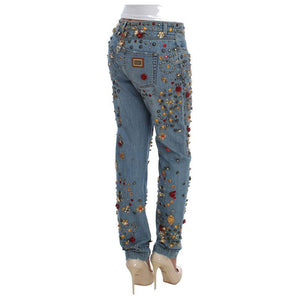 Dolce & Gabbana Crystal Roses Heart Embellished Jeans