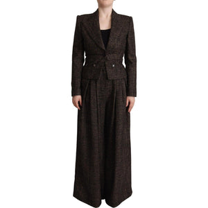 Gorgeous brand new with tags, 100% Authentic Dolce & Gabbana cropped blazer jacket with wide leg trousers crafted from wool blend features a long sleeves and button closure.