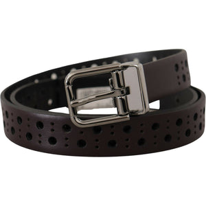 Dolce & Gabbana Dark Purple Perforated Leather Metal Buckle Belt