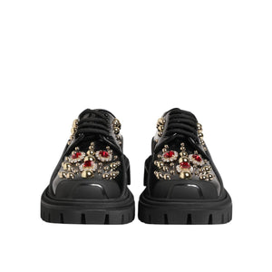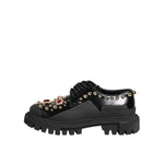 Dolce & Gabbana Black Leather Jeweled Crystals Derby Shoes