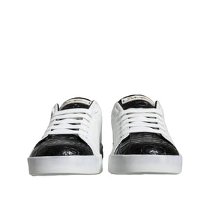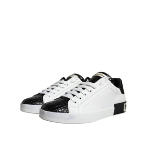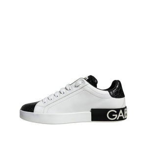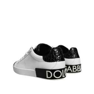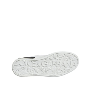 Dolce & Gabbana Black Leather Logo Portofino Sneaker Shoes