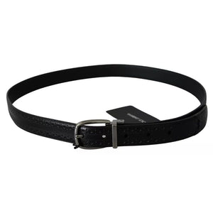 Dolce & Gabbana Black Leather Silver Metal Buckle Classic Belt
