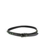 Dolce & Gabbana Black Leather Studded Silver Tone Buckle Belt