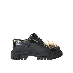 Dolce & Gabbana Black Leather Trekking Derby Embellished Shoes