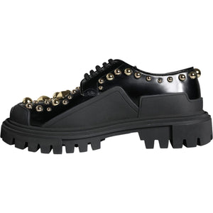 Dolce & Gabbana Black Leather Trekking Derby Embellished Shoes