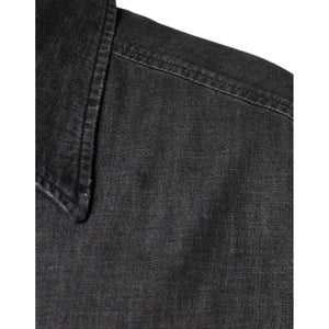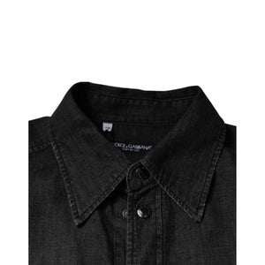 Dolce & Gabbana Black Logo Cotton Button Down Denim Shirt