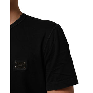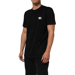 Dolce & Gabbana Black Logo Plaque Cotton Crew Neck T-shirt