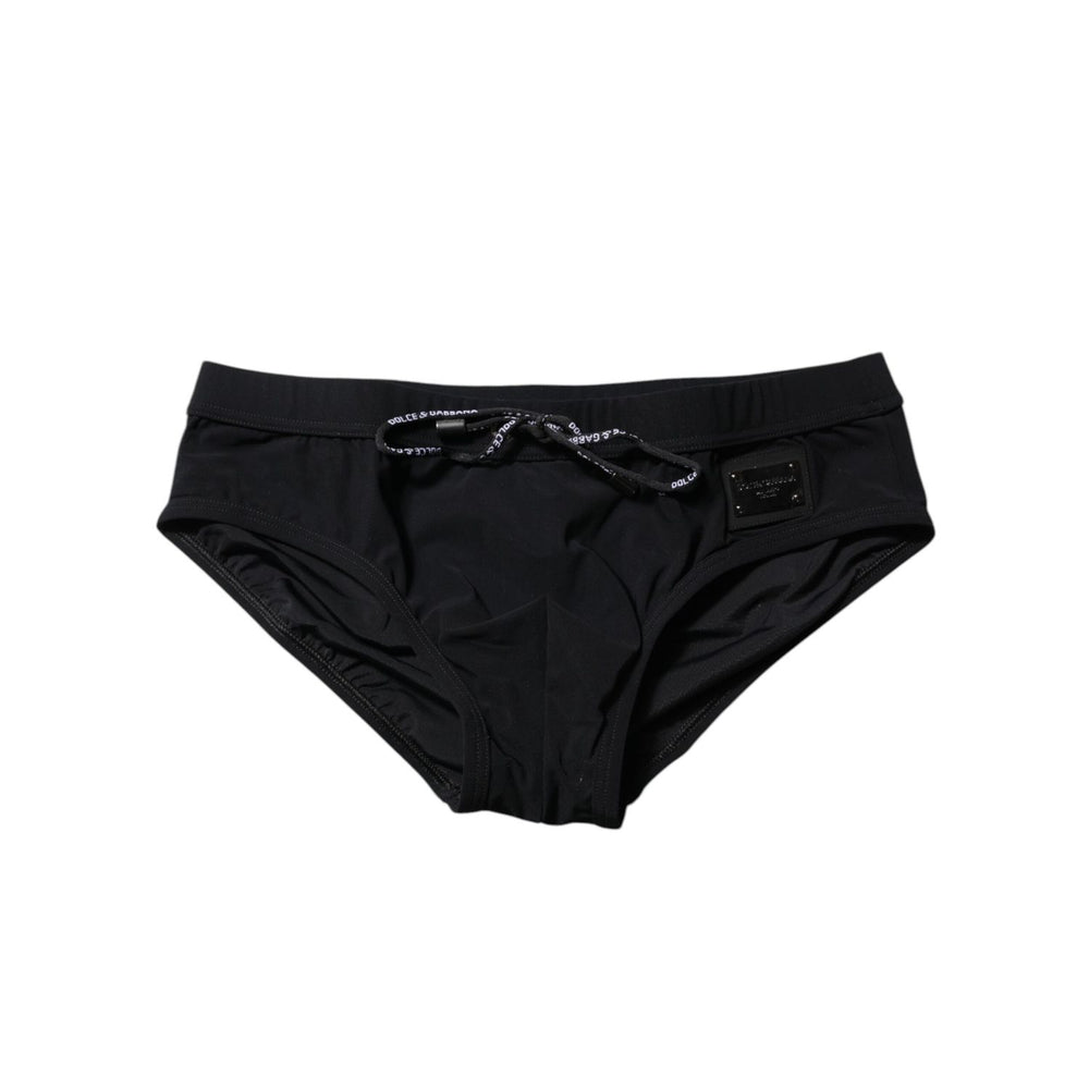 Dolce & Gabbana Black Logo Plaque Men Beachwear Brief Swimwear