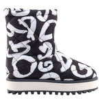 Step out in audacious style with these Dolce & Gabbana quilted nylon boots, a fashion statement that boldly reflects sophistication with an edgy twist. Showcasing a striking black and white print, these boots feature a standout rubber logo patch, while the contrasting black and white rubber sole guarantees to turn heads. Designed in Italy, they blend the epitome of luxurious craftsmanship with contemporary design. Perfect for the trendsetter who demands attention without sacrificing comfort.