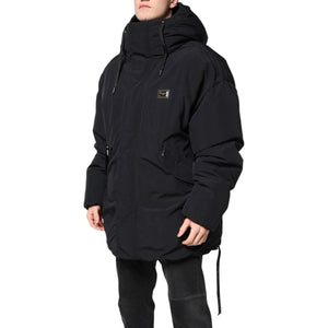 Dolce & Gabbana Black Nylon Full Zip Hooded Parka Jacket