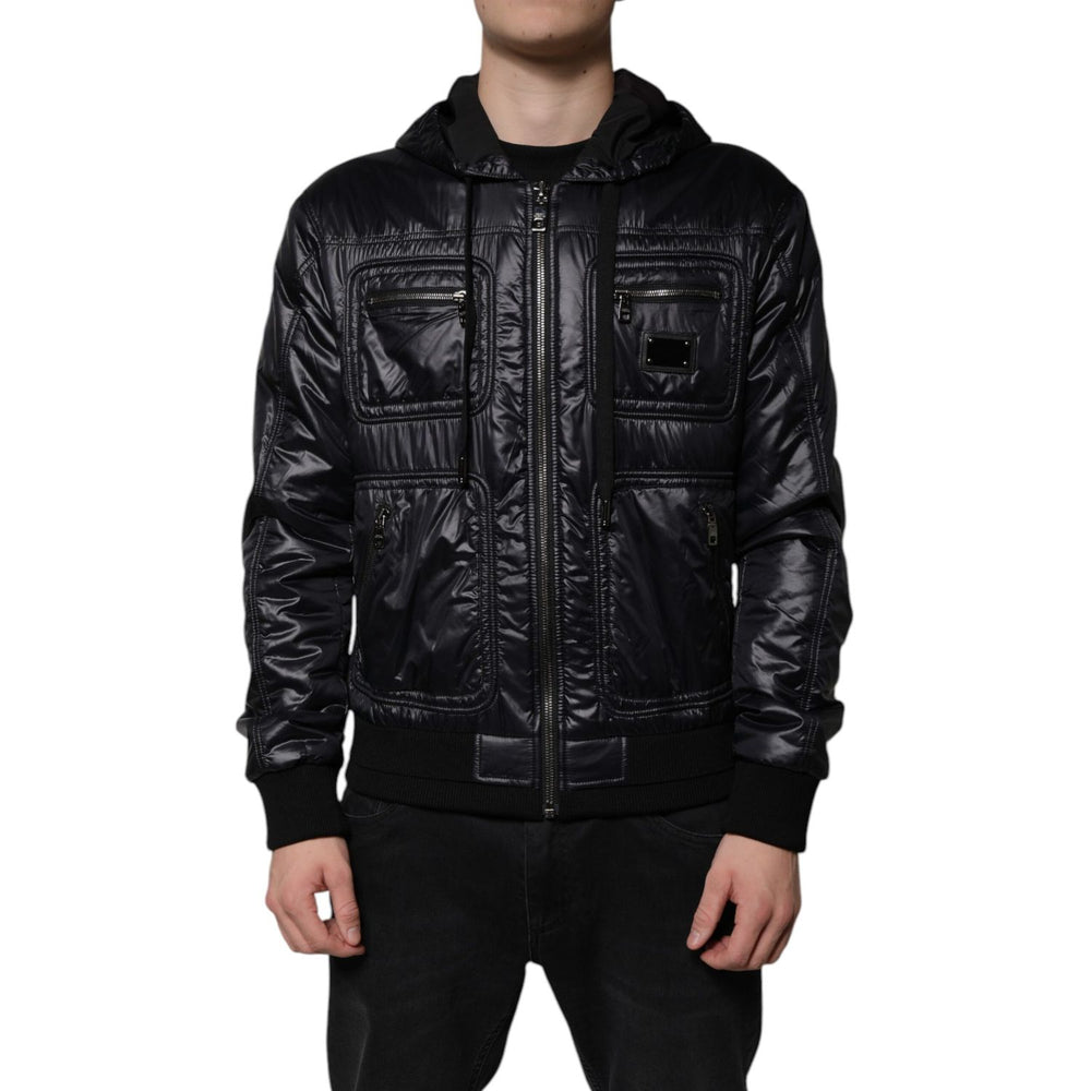 Dolce & Gabbana Black Nylon Hooded Full Zip Blouson Jacket
