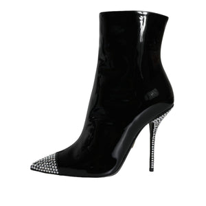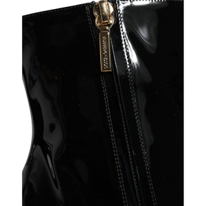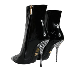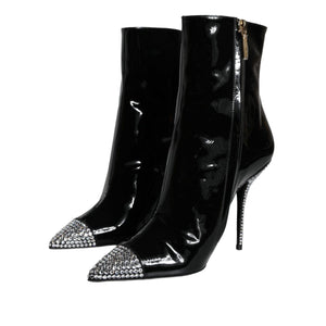 Dolce & Gabbana Black Patent Leather Crystal Heel Boots Shoes
