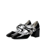 Dolce & Gabbana Black Patent Leather Crystal Mary Jane Pumps Shoes