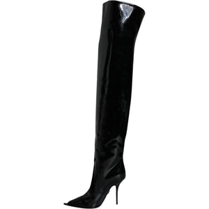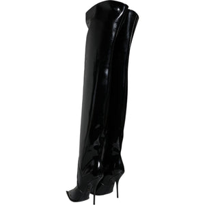 Dolce & Gabbana Black Patent Leather Knee High Boots Shoes